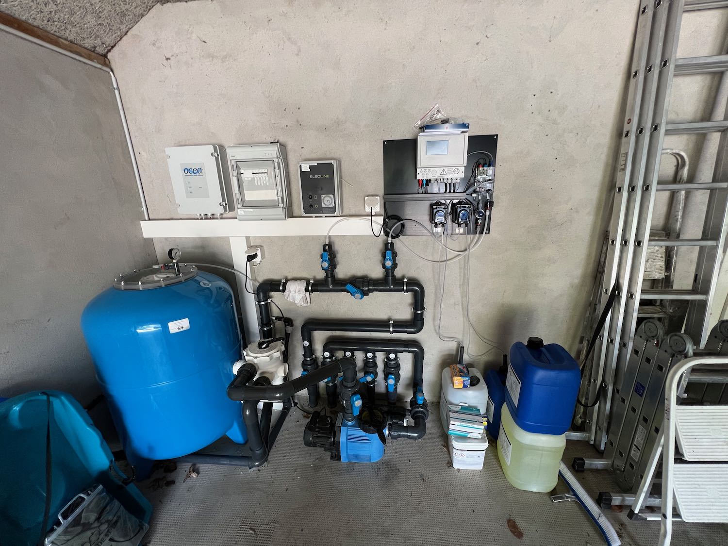 Réalisation du local technique, avec ventilation, déshumidification, et contrôle à distance sur les paramètres de l’eau.