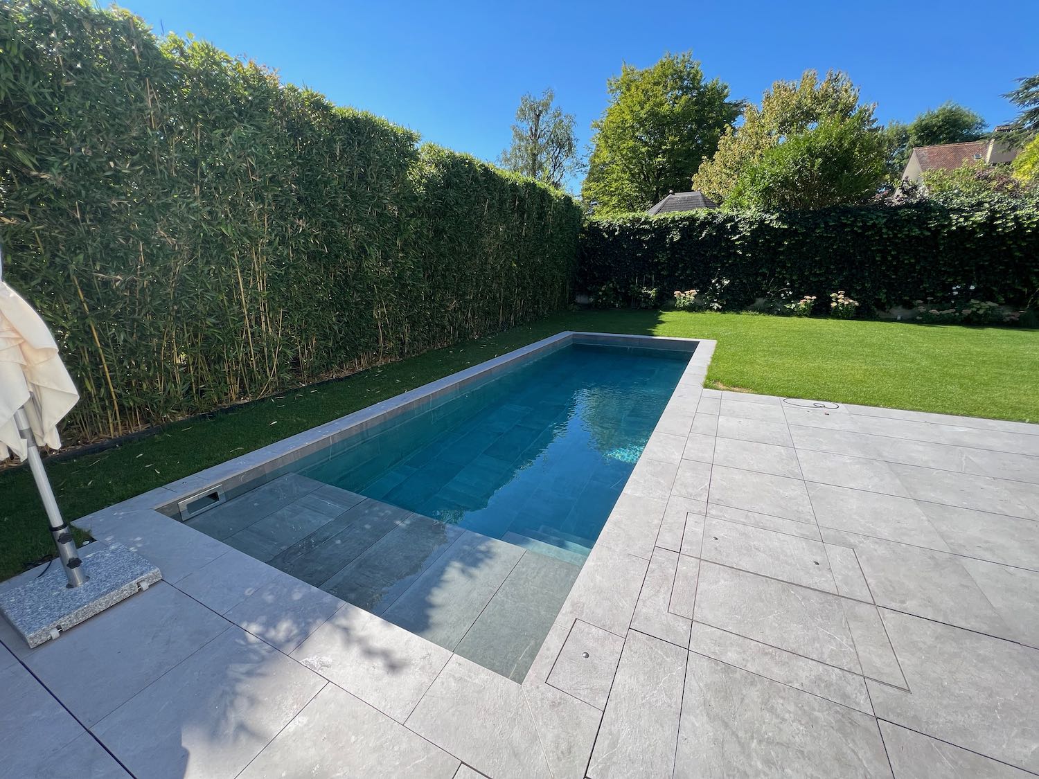 Rénovation de la terrasse en pierre naturelle et rénovation de la piscine en PVC armé.